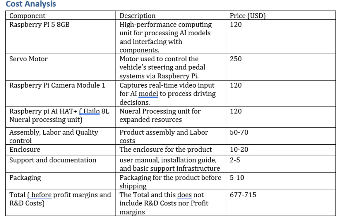 ➢ We will test the Invention in a dark environment to test night driving capabilities ➢ We will make Data Transmission between vehicles in the same city. ➢ we will apply the product in a real full-scale vehicle by installing cameras and sensors that monitor the driver’s pedal presses and steering angles. These sensors collect data for an AI model to replicate perfectly. Then, we will install motors that allow the model to drive the car. ➢ We Will add reinforcement learning Fine-Tuning to improve performance.